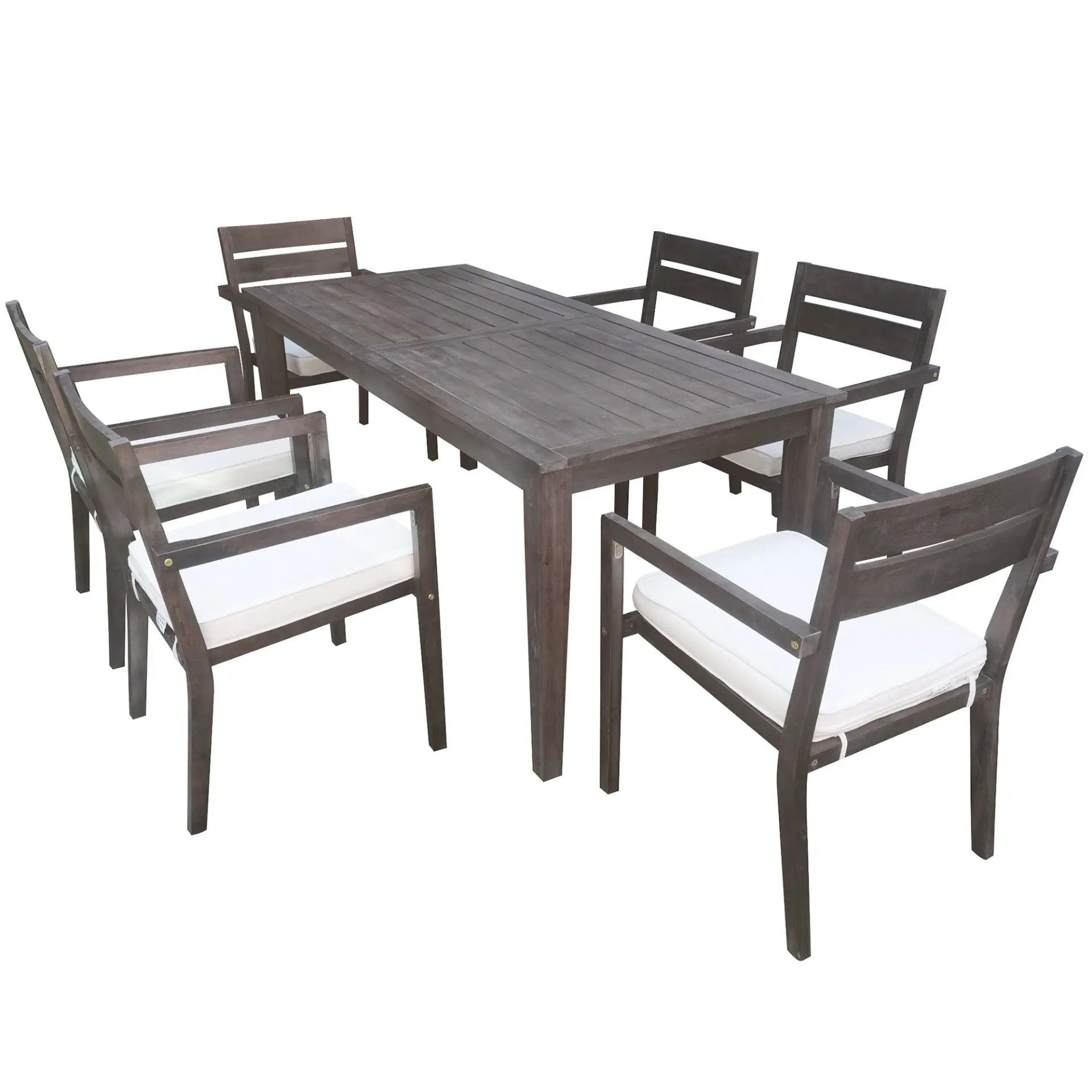 Fine sanding and protective coatings give both table and chairs a smooth, splinter-free finish that enhances durability while showcasing the woods natural grain.Crafted from naturally sturdy acacia wood, this 7-piece dining set delivers exceptional strength, weather resistance.