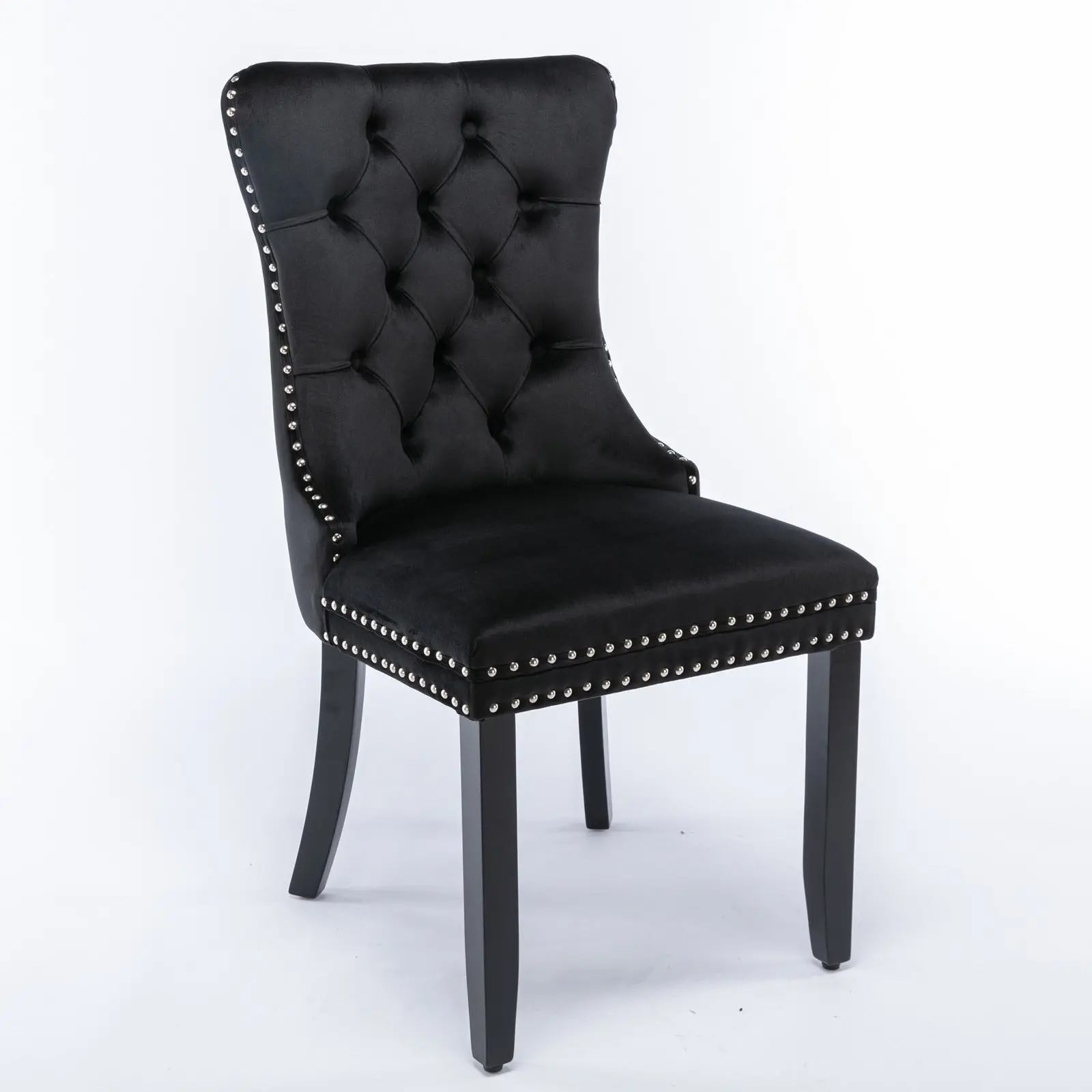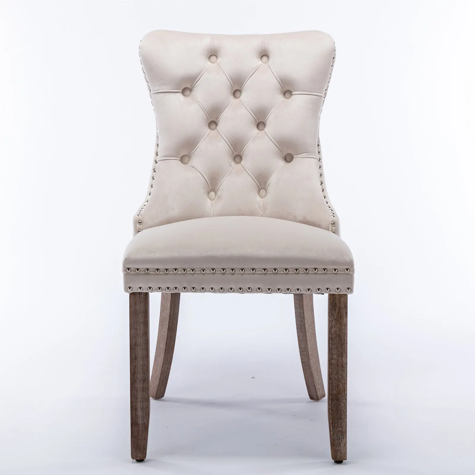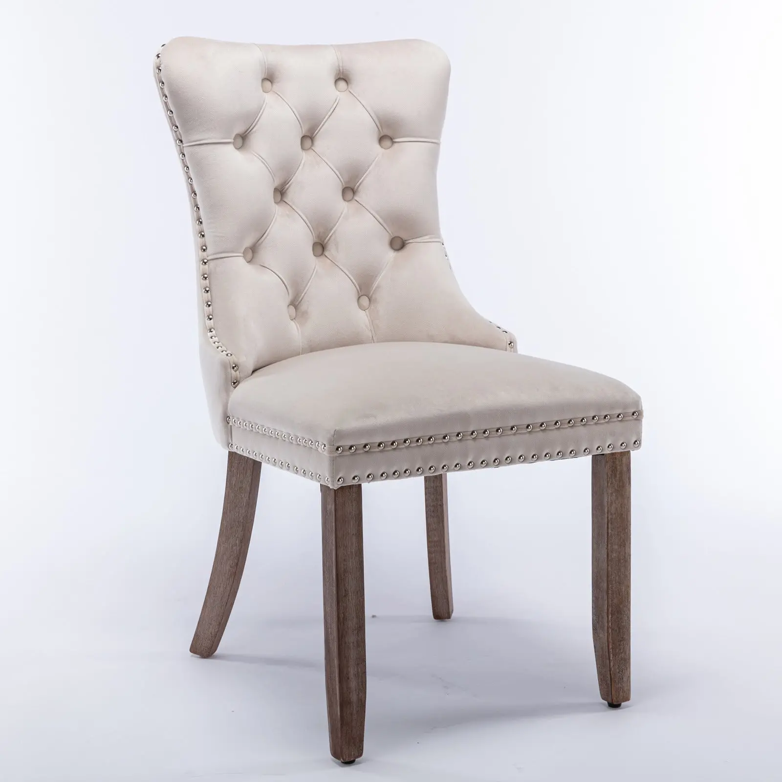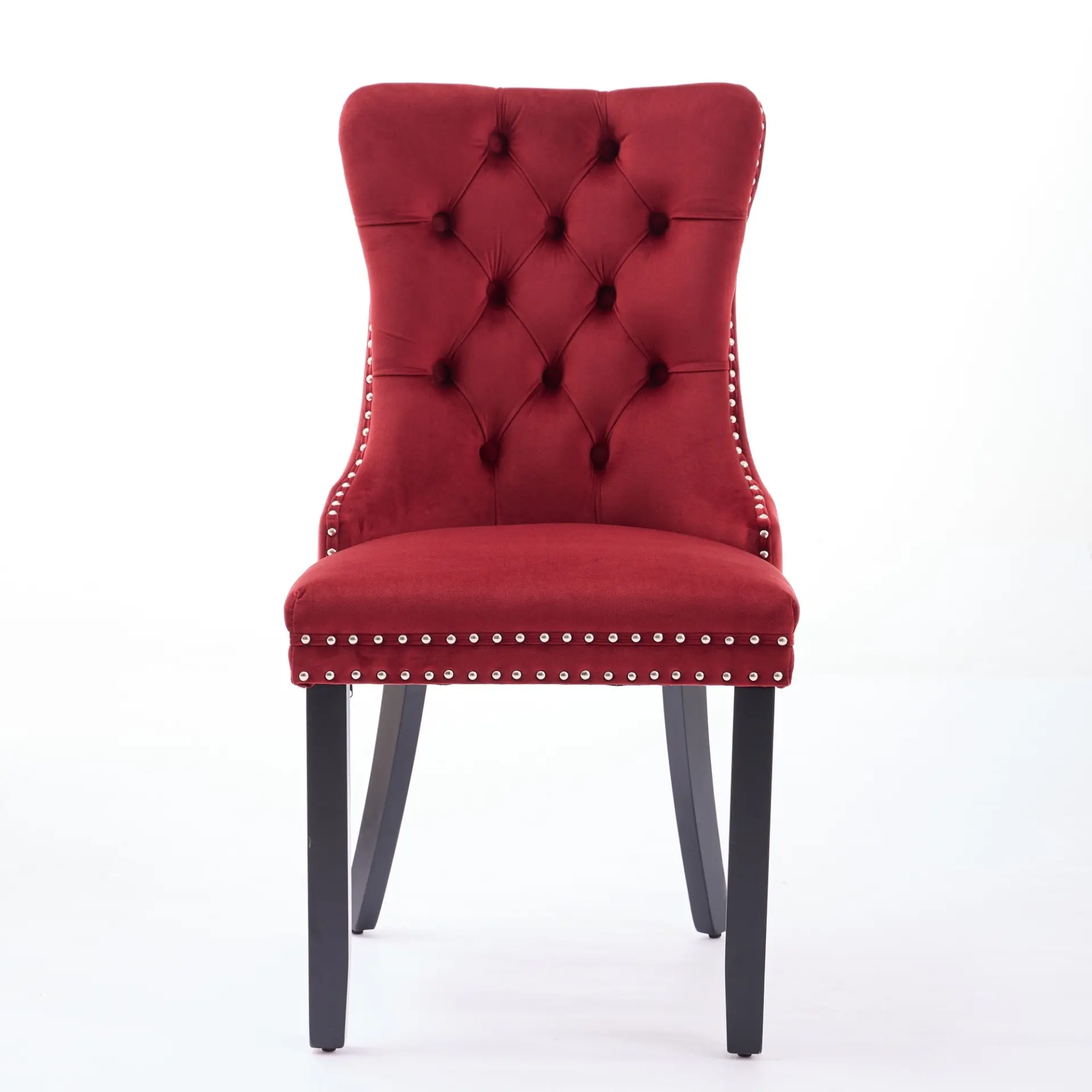 Elevate everyday dining with a refined set of upholstered dining chairs designed to bring modern mid-century style and a touch of luxury to your dining room, living space, or apartment. Wrapped in thick, high-quality velvet with a soft, delicate feel, each chair features a hand-finished tufted backrest and elegant nailhead trim for a polished, high-end look.