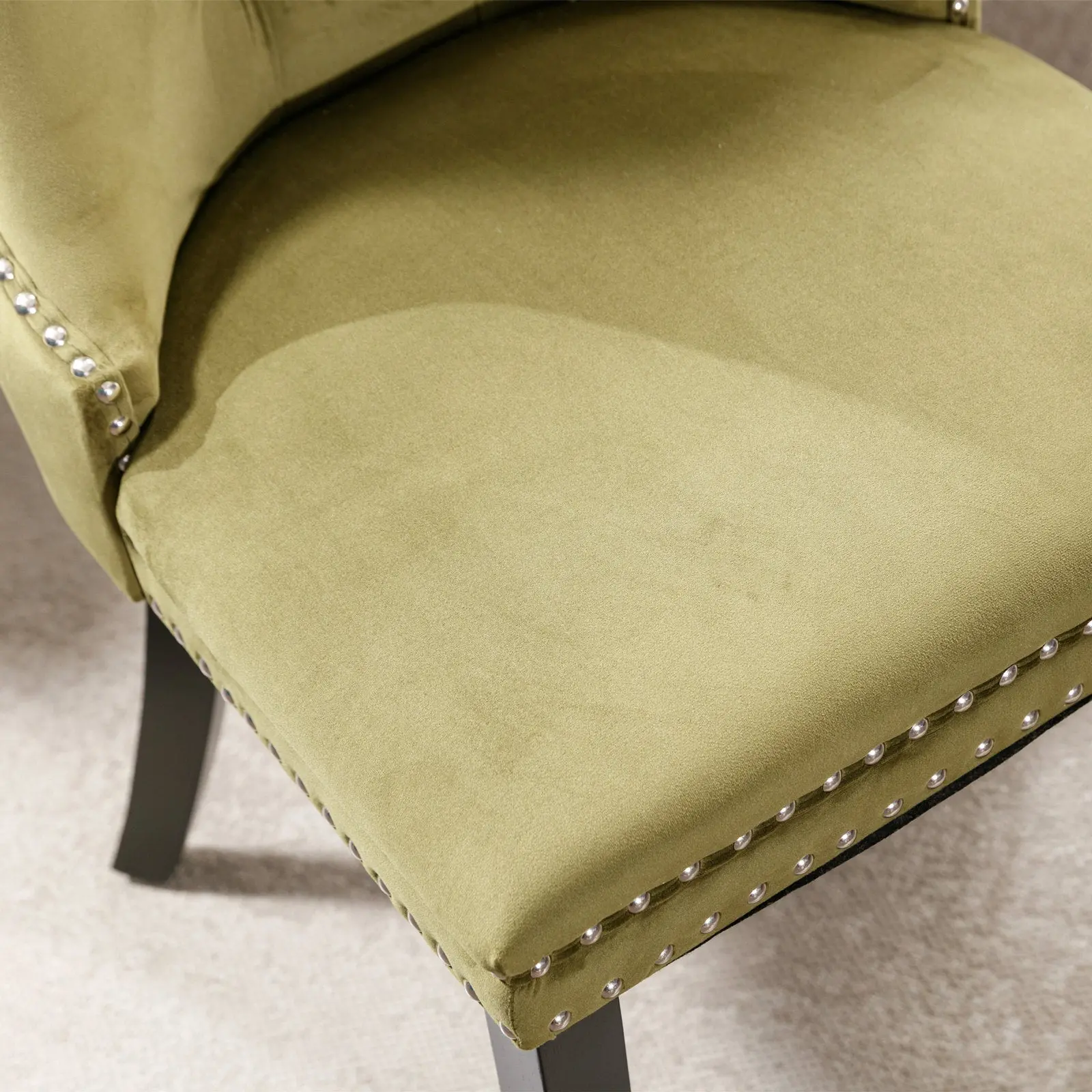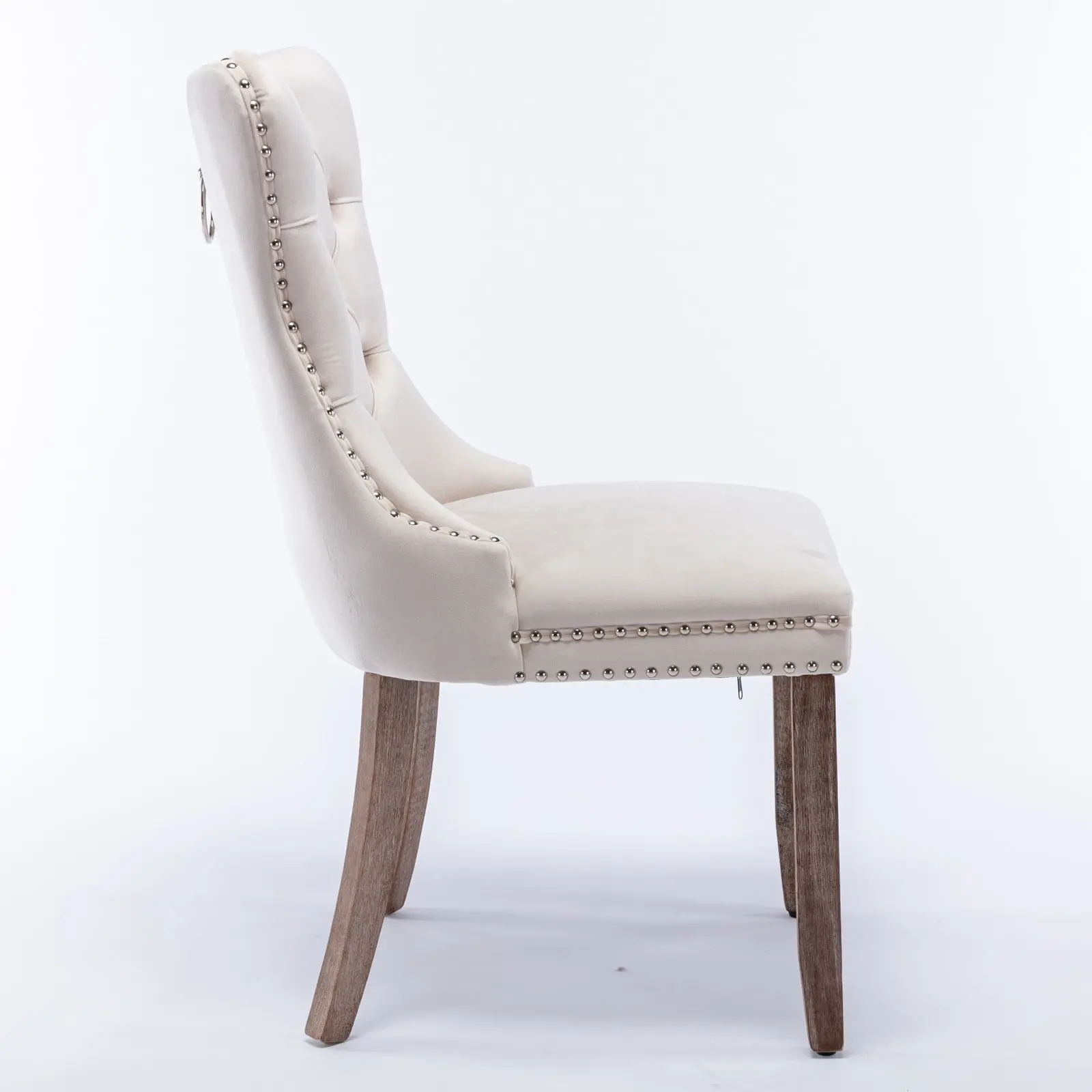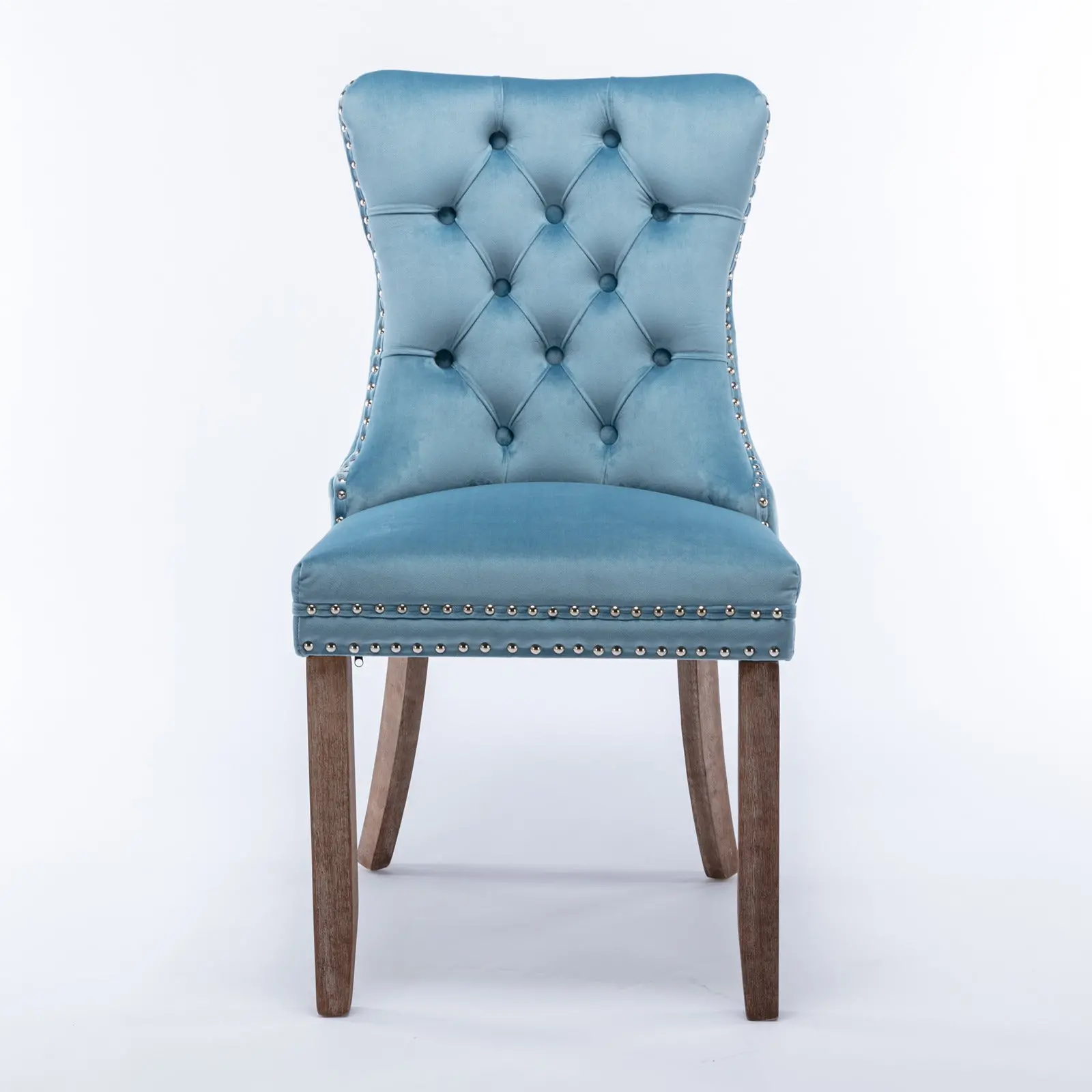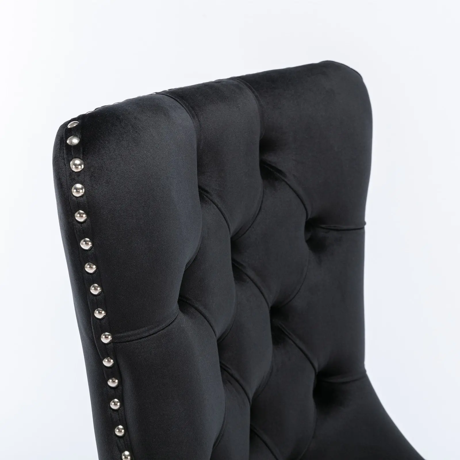 Elevate everyday dining with a refined set of upholstered dining chairs designed to bring modern mid-century style and a touch of luxury to your dining room, living space, or apartment. Wrapped in thick, high-quality velvet with a soft, delicate feel, each chair features a hand-finished tufted backrest and elegant nailhead trim for a polished, high-end look.