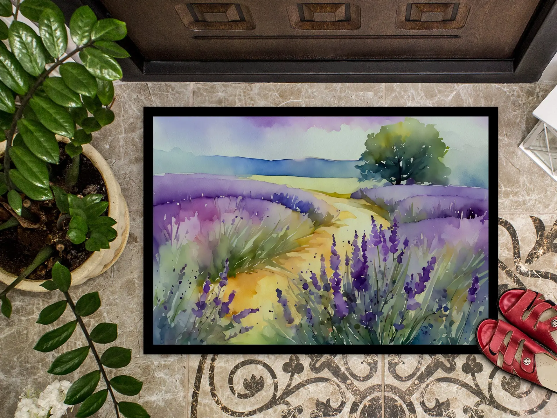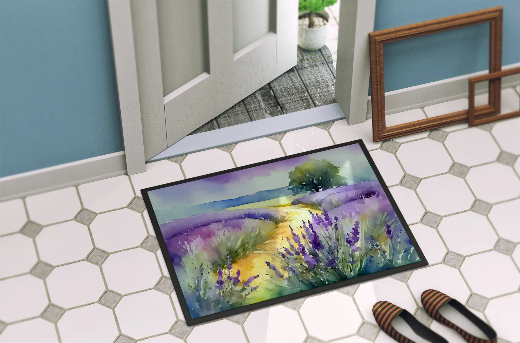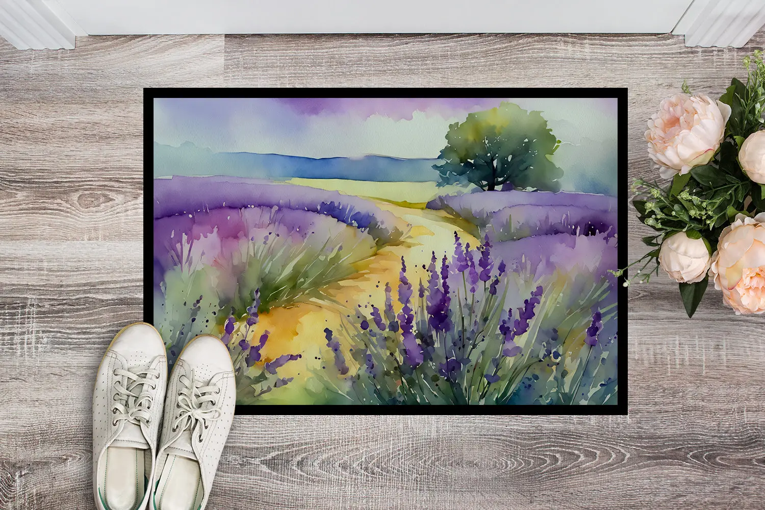 Doormat featuring breed specific Lavender artwork. Welcome your guests in style with our Artwork Door Mat, designed to withstand almost any weather condition. This mat, measuring approximately 18 by 27 inches, is held together by durable black binding tape. Its top layer, composed of polyester felt, is dyed with the eye-catching image you see on the mat. A few layers below provide the mat with stability, while its rubber bottom is stamped to help prevent slipping and ensures safety. Our mat works wonderfully as both an indoor or outdoor door mat. For cleaning, simply hose it off with water or use a power washer – no need for any cleaner that produces suds. Avoid scrubbing with a brush, instead, opt for the vacuum on floor setting. Designed manufactured and printed in the USA, this mat is a perfect addition to your porch, outdoor kitchen, entryway, or any indoor space. Its unique design makes it a charming decorative rug that greets your guests and adds a stylish touch to your home decor.