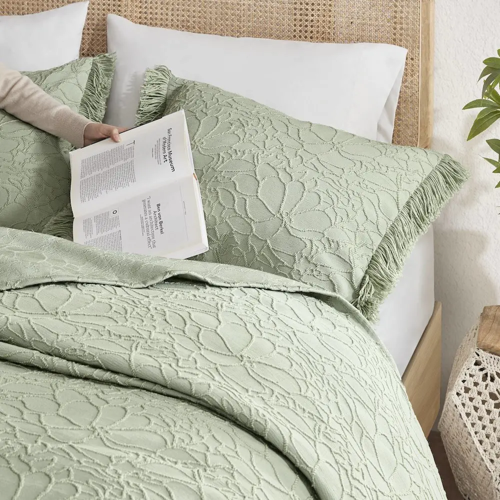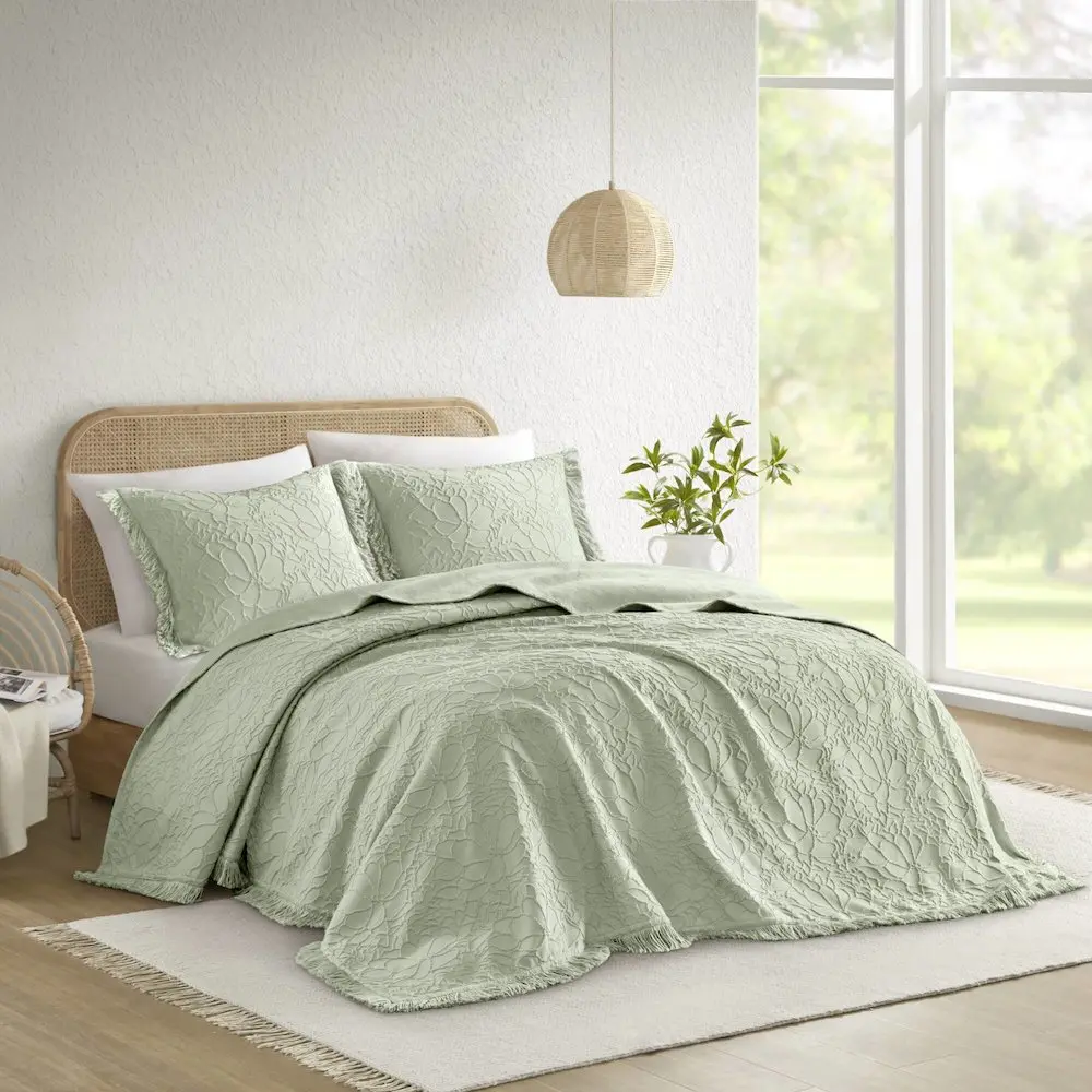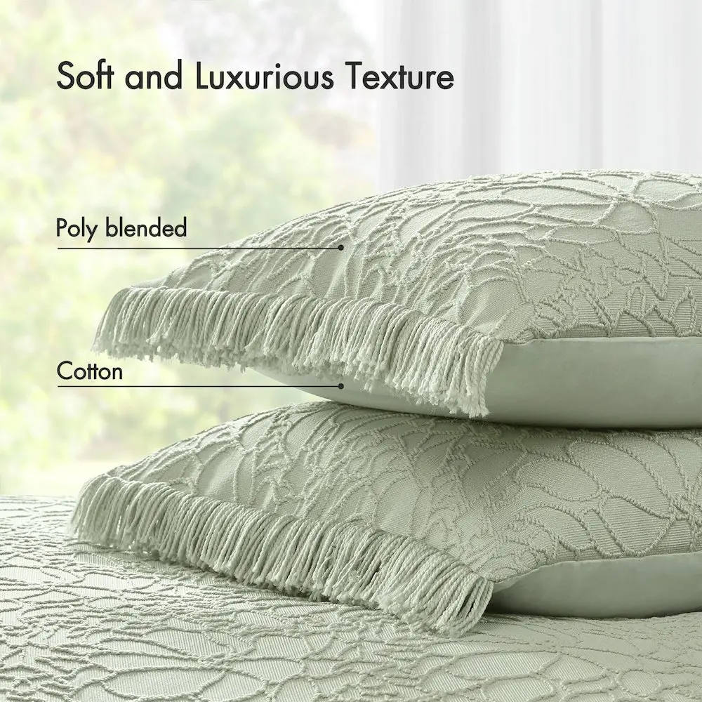 Floral Elegance and Oversized Comfort – Transform your bedroom into a cozy cottage retreat with this chenille bedspread. Featuring charming, nature-inspired floral tufting, a shabby chic fringed border, and an oversized design for generous coverage, it combines timeless charm with exceptional comfort. Lightweight and breathable, it’s perfect for summer and ideal for layering in winter. Crafted for durability and lint resistance, the cotton poly blend material ensures lasting softness and effortless upkeep. OEKO-TEX STANDARD 100 certified for your comfort and wellness, this bedspread is free from harmful substances and machine washable for easy care.